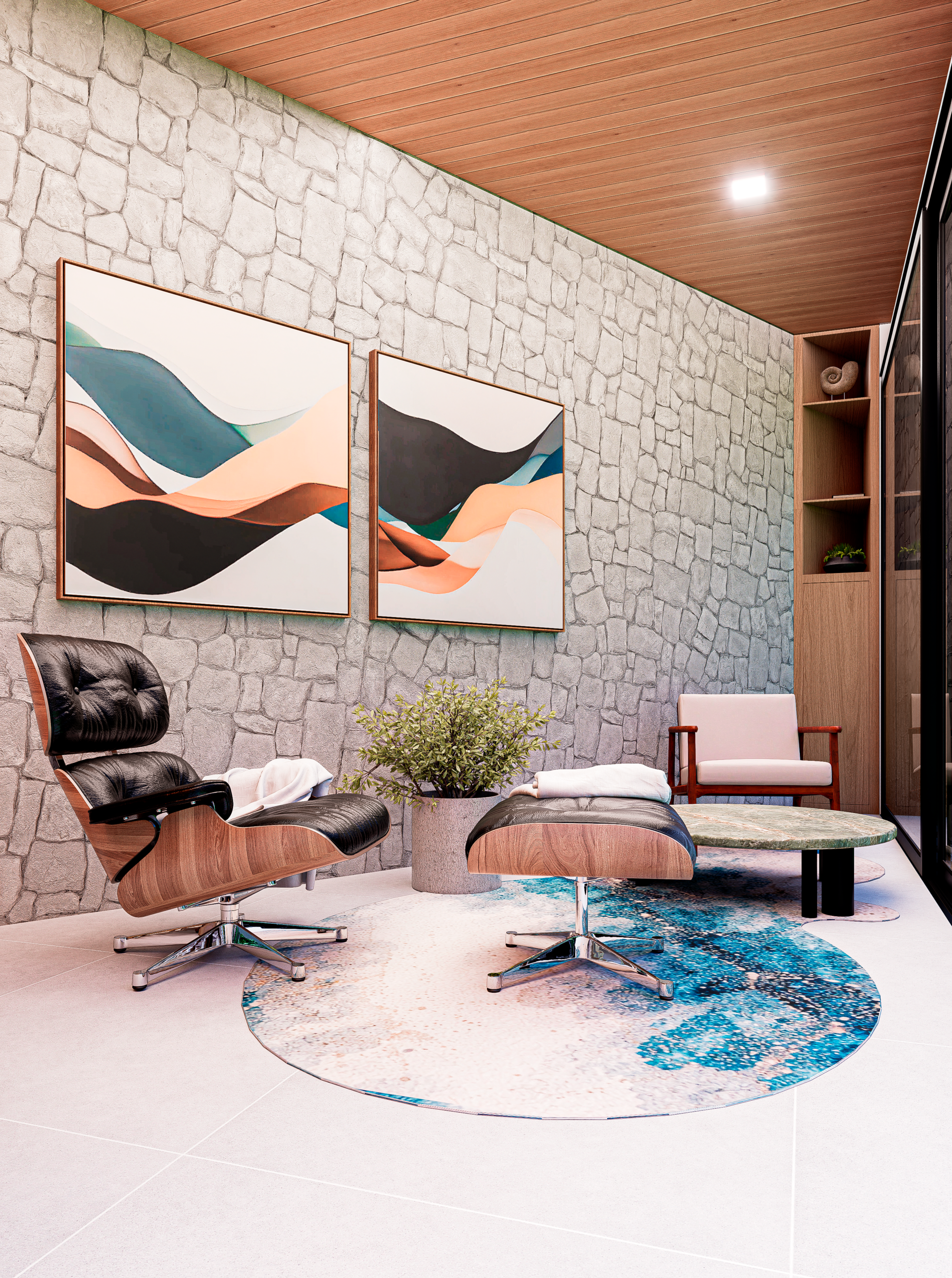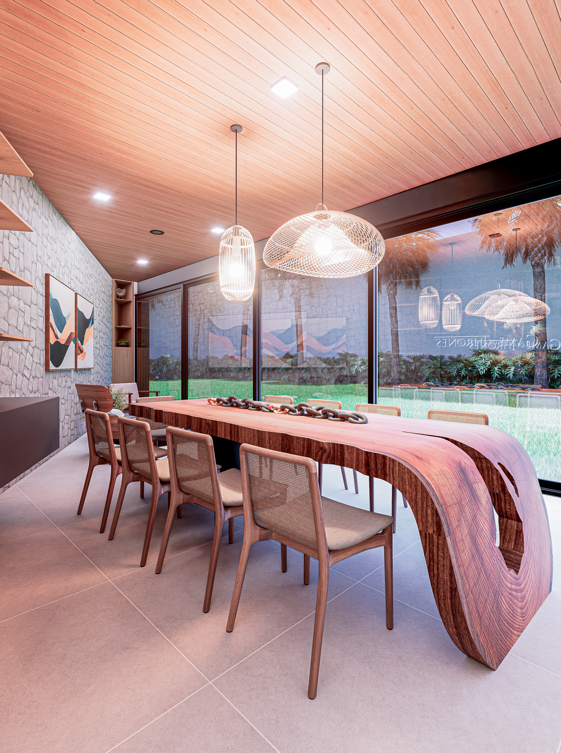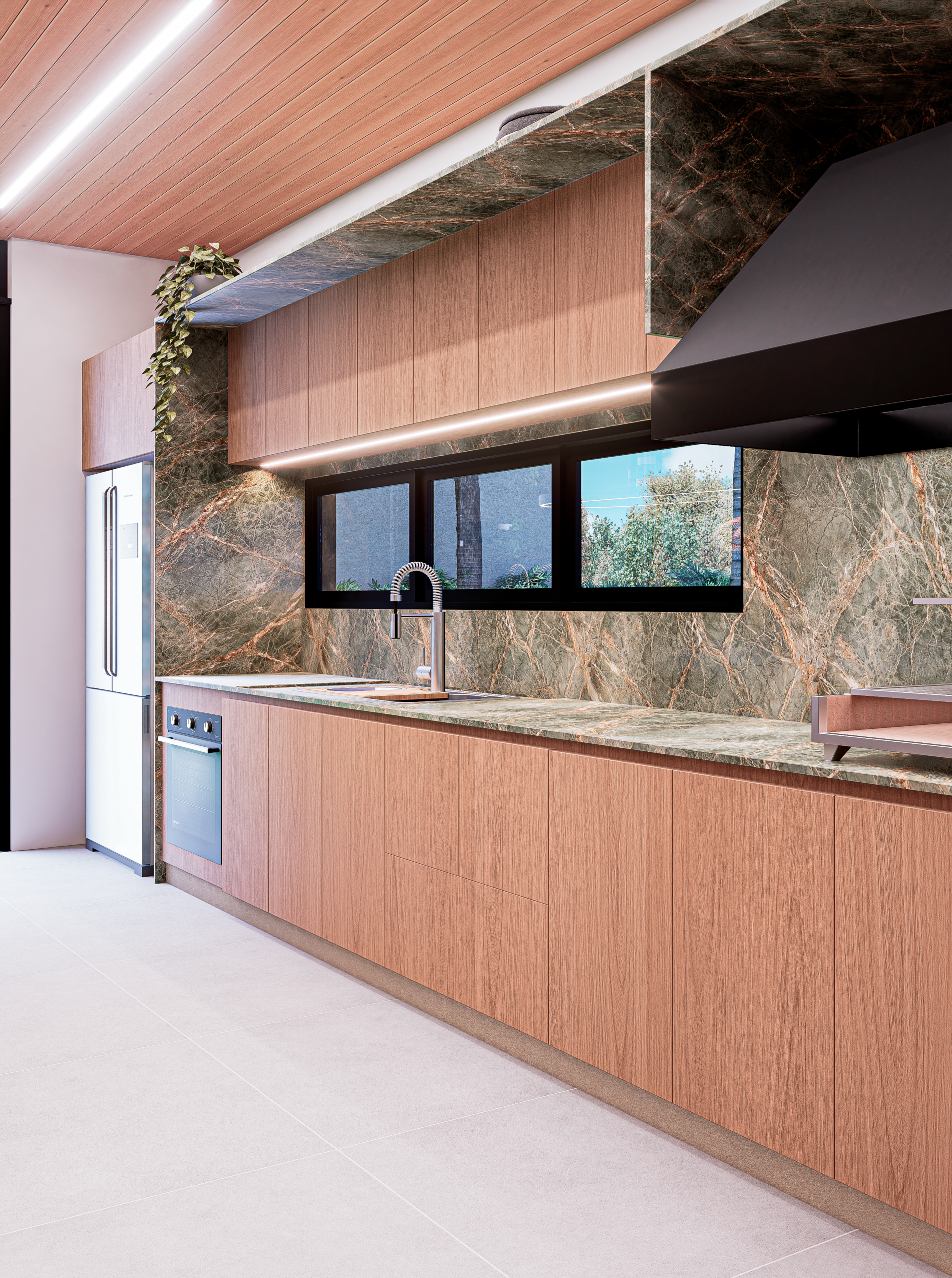 Neste projeto, o Design encontra na natureza sua principal narrativa. O quartzito Verde Amazônia assume o protagonismo do espaço e transforma a superfície em paisagem. Ao redor dele, a arquitetura se torna mais contida, permitindo que a força orgânica da pedra conduza a experiência do ambiente. O resultado é um interior sofisticado, onde matéria, luz e proporção trabalham juntos para construir uma atmosfera marcante e silenciosamente elegante.