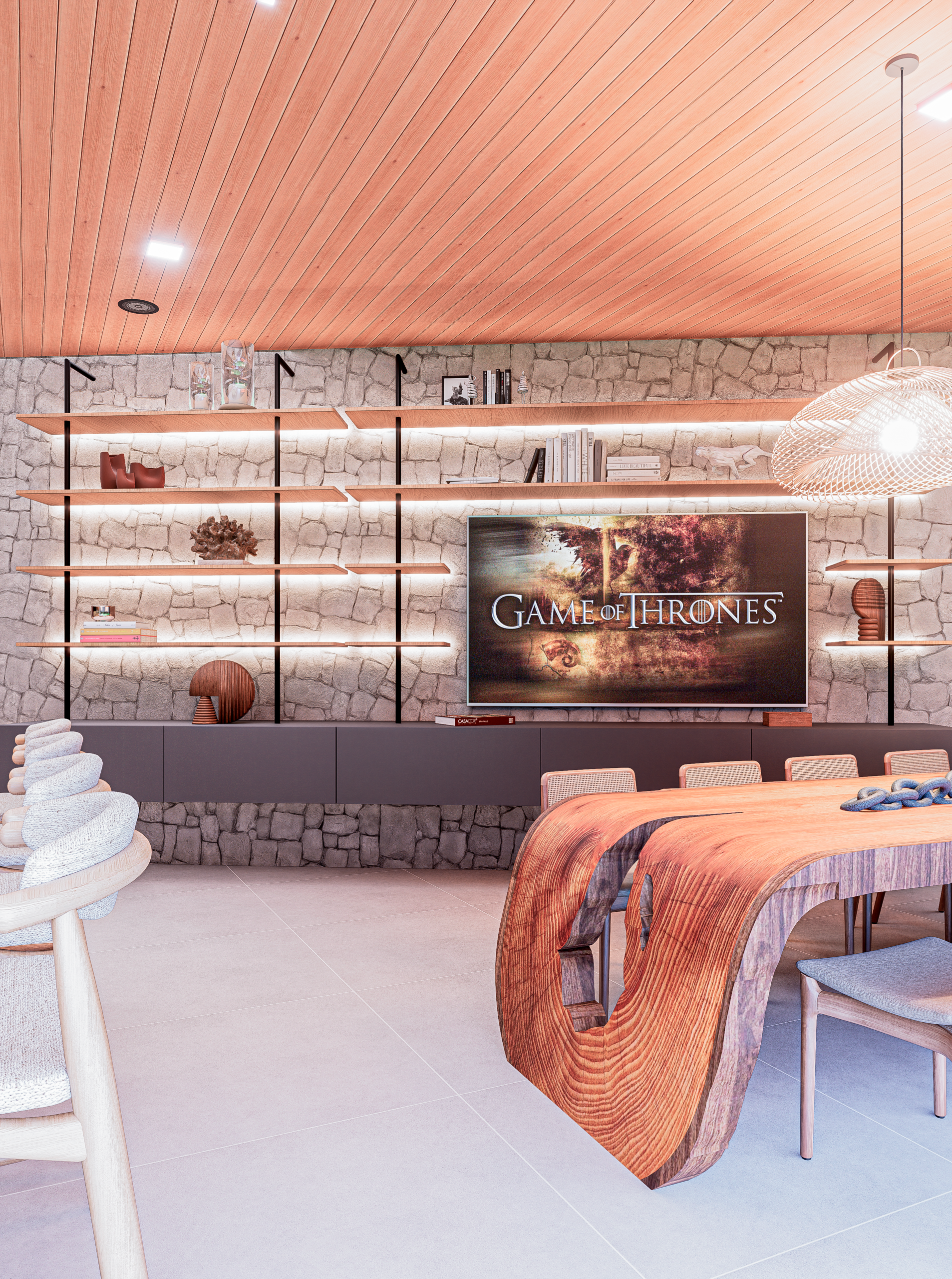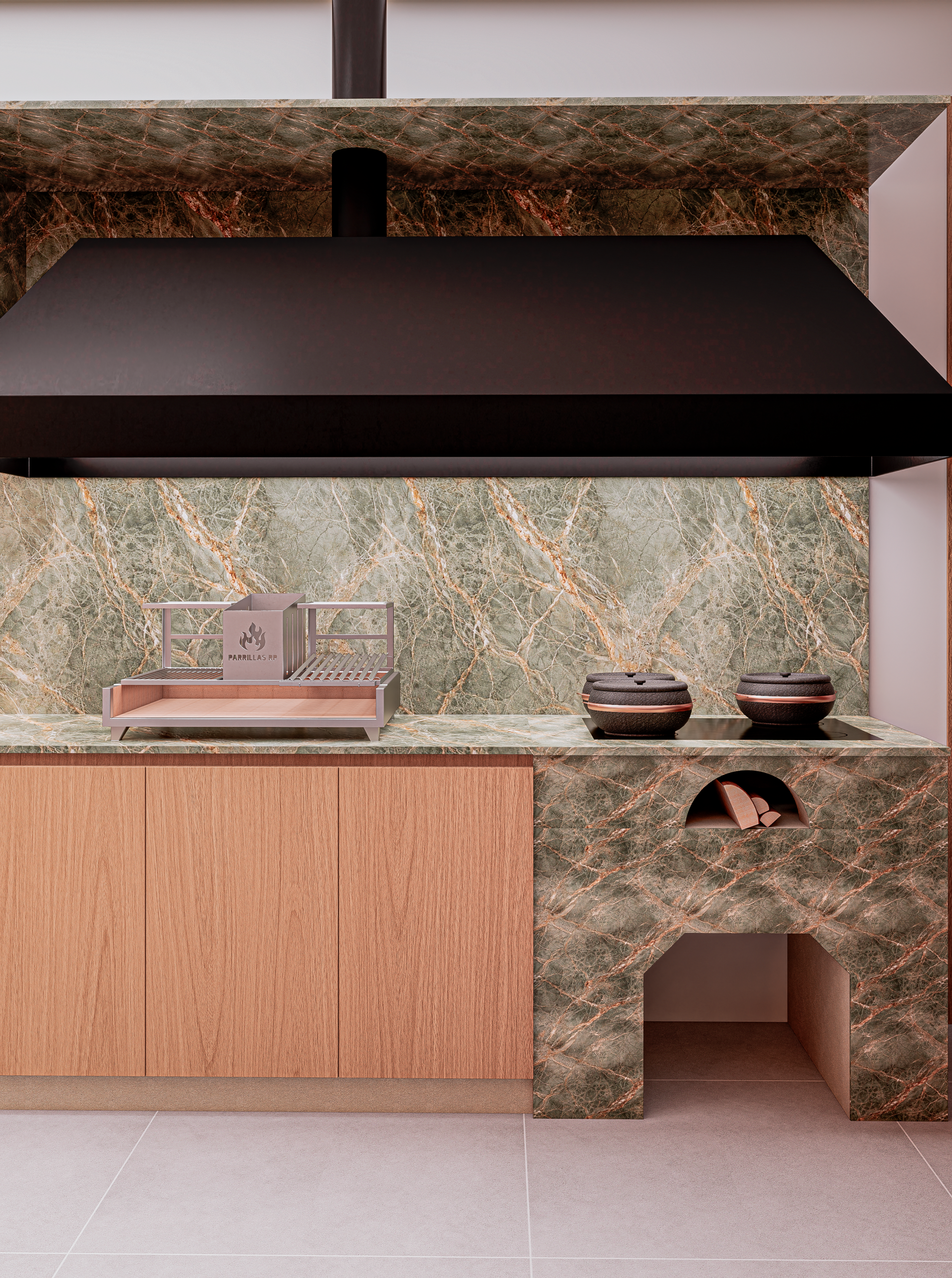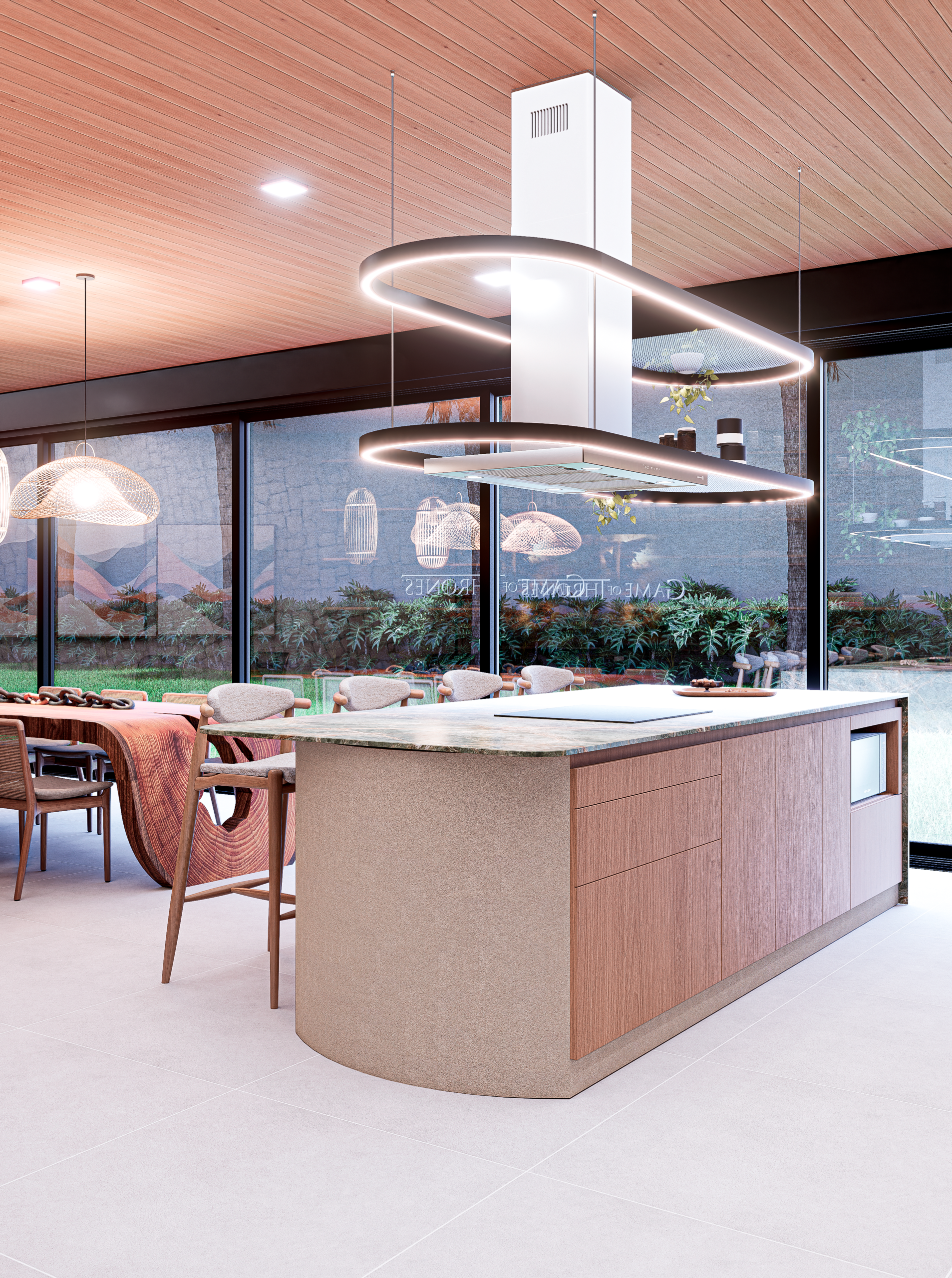 Neste projeto, o Design encontra na natureza sua principal narrativa. O quartzito Verde Amazônia assume o protagonismo do espaço e transforma a superfície em paisagem. Ao redor dele, a arquitetura se torna mais contida, permitindo que a força orgânica da pedra conduza a experiência do ambiente. O resultado é um interior sofisticado, onde matéria, luz e proporção trabalham juntos para construir uma atmosfera marcante e silenciosamente elegante.